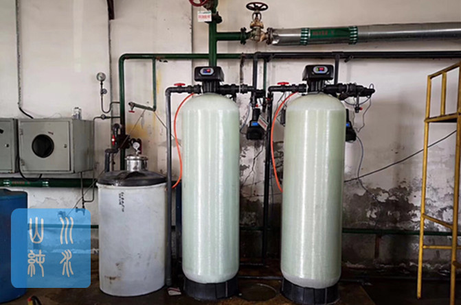 )離子構成。 當含有硬度的原水通過交換器的樹脂層時,水中的鈣、鎂離子被樹脂吸附,同時釋放出鈉離子,這樣交換器內流出的水就是去掉了硬度離子的軟化水,當樹脂吸附鈣、鎂離子達到一定的飽和度后,出水的硬度增大,此時軟水器會按照預定的程序自動進行失效樹脂的再生工作,利用較高濃度的氯化鈉溶液(鹽水)通過樹脂,使失效的樹脂重新恢復至鈉型樹脂。