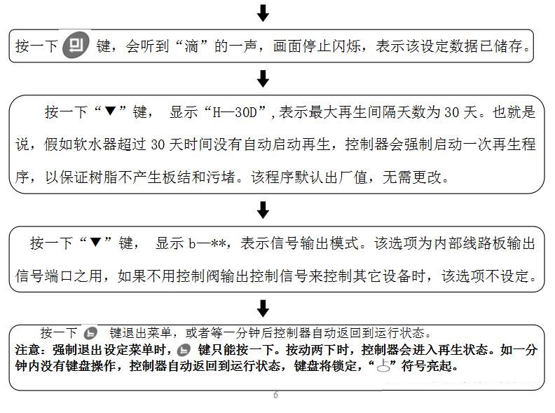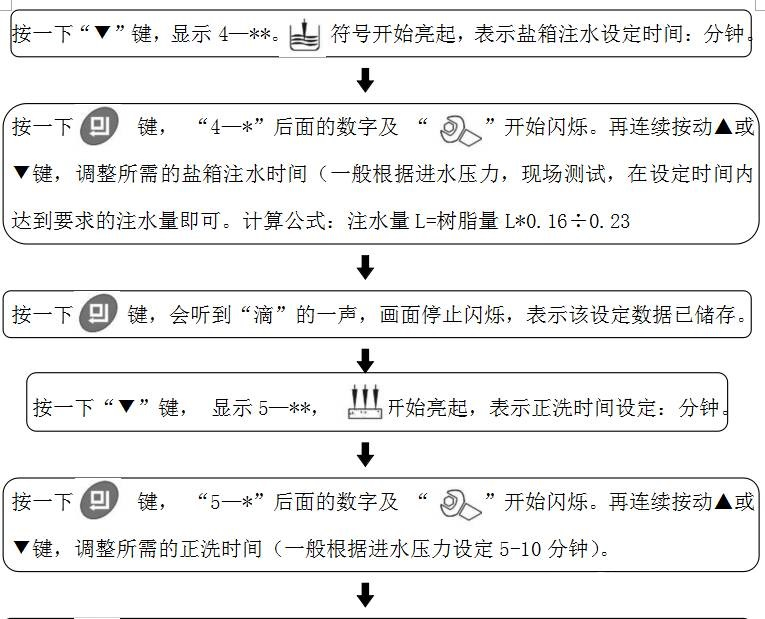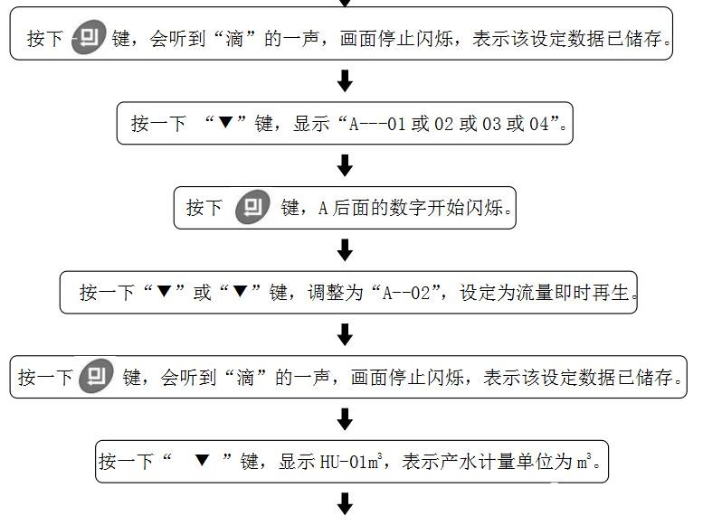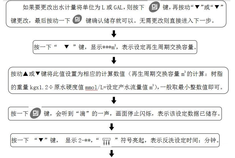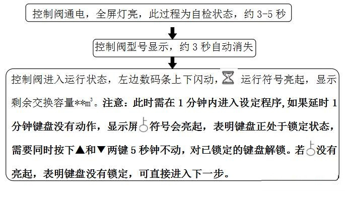 注:因控制閥電子版更新換代比較快,程序設定內容不一定完全與本說明書相符,如出現缺項程序,可直接進入下一步。