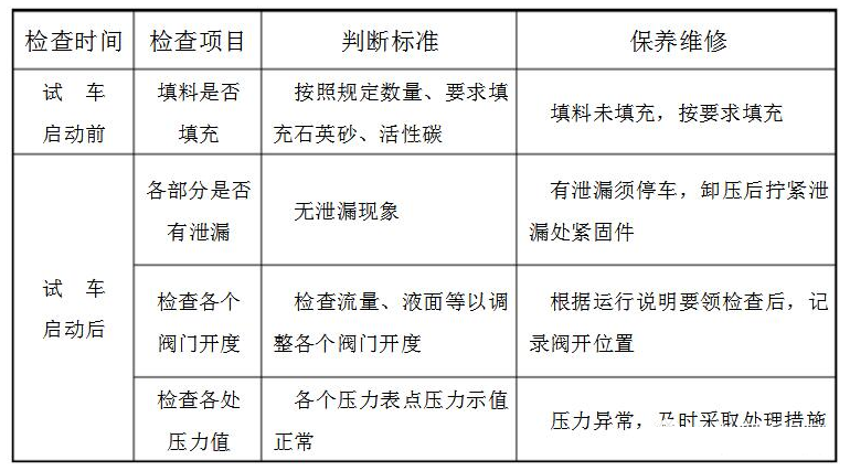 為了縮短定期檢查的停車時間,在檢查人員和檢修工人人數許可的情況下,盡量與水站其它設備裝置的檢查同時進行。檢查時如發現有異常,一定要及時處理,并給予解決。