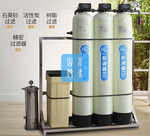 用于地下水、井水處理,對預處理有較高要求的客戶,一級過濾石英砂過濾器,它是利用石英砂作為過濾介質,在一定的壓力下,把濁度較高的水通過一定厚度的粒狀或非粒的石英砂過濾,有效的截留除去水中的懸浮物、有機物、膠質顆粒、微生物、氯、嗅味及部分重金屬離子等,最終達到降低水濁度、凈化水質效果的一種高效過濾設備。二級過濾活性炭過濾器主要用于去除水中有機物,膠體硅,余氯等,對臭味,色度,重金屬離子的吸附能力很強。飲料行業選用凈水炭,可改善產品口感。三級過濾全自動軟水器是一種運行和再生操作過程全自動控制的離子交換軟水器,利用鈉型陽離子交換樹脂去除水中鈣鎂離子,降低原水硬度,以達到軟化硬水的目的。四級過濾精密過濾器采用PP棉、熔噴等不同材質作